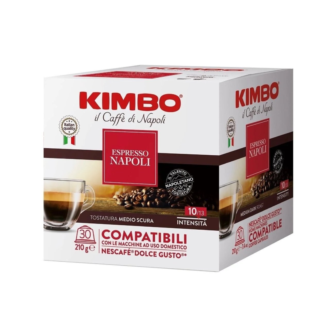 KIMBO Espresso Napoli kafijas kapsulas, 30 kapsulas. Intensitāte: 10/13 Aromāts: 5/6 Ķermenis: 5/6. Ideāli piemērotas Nescafé un Dolce Gusto kafijas automātiem. Svars: 210g. Ieteicams līdz: skatīt uz iepakojuma. Uzglabāt sausā un vēsā vietā. Ražotājs: Kimbo S.p.A., Itālija. Izplatītājs: Moop Sia, Dzirnavu 45, Rīga, Latvija, info@moop.lv