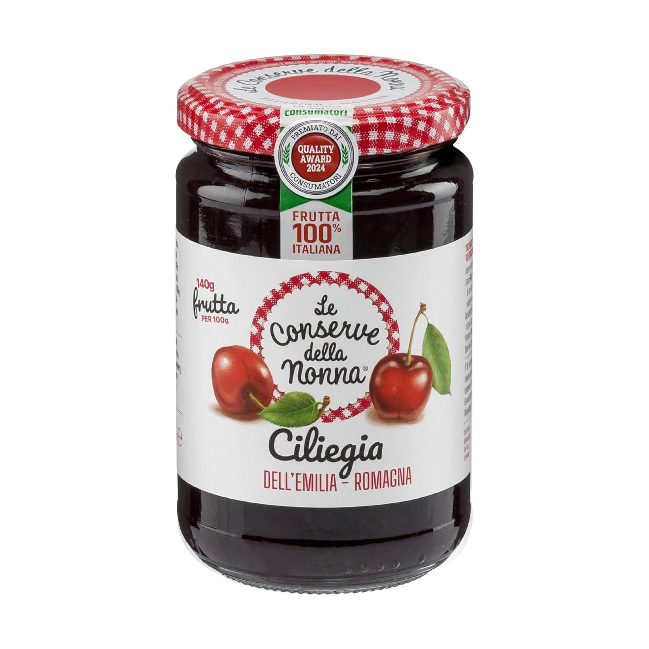 Ķiršu ievārījums 330g. Bez pievienota pektīna. Sastāvdaļas: Ķirši, Cukurs. Ražots ražotnē, kurā izmanto selerijas, pienu, soju, riekstus, zivis un vēžveidīgos. Uzturvērtība uz 100g: enerģētiskā vertība 945 kJ / 223 kcal; tauki 0g, no kuriem piesātinatās taukskābes 0g; ogļhidrāti 50g, no kuriem cukurs 50g; olbaltumvielas 2g; sāls 0g. Ieteicams līdz: skatīt uz iepakojuma. Uzglabāt sausā un vēsā vietā. Ražotājs: Gruppo Fini S.p.A., Itālija. Izplatītājs: Moop Sia, Dzirnavu 45, Rīga, Latvija